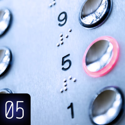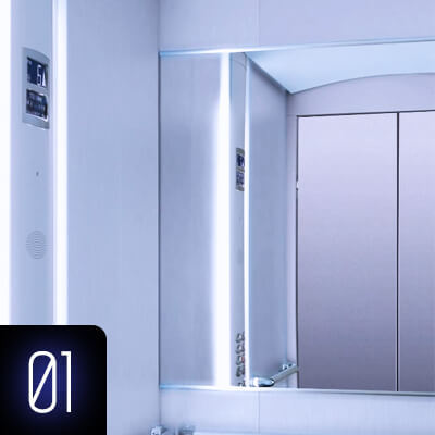 1. Зеркало; 2. Вентилятор; 3. Табло индикации положения и перегрузки кабины, в том числе и с речевым сообщением; 4. Устройство ограничения доступа (механический или электронный ключ); 5. Кнопки с кодом Брайля; 6. Система эвакуации пассажиров; 7. Нестандартное обозначение остановок; 8. Видеонаблюдение в кабине; 9. Фотобарьер на дверях кабины.